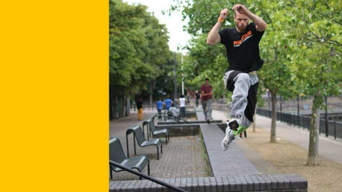 Reggy Laatsch laat geen obstakel op straat onbenut om sportief bezig te zijn. Voor zichzelf én om anderen in beweging te krijgen. Geef hem een bankje, stoeprand, muurtje of fietsrek en hij bedenkt er oefeningen bij. De beweegroute krijgt straks een belangrijke rol in zijn lessen. Als Vriend van Club Entree biedt hij zijn kennis aan bij de ontwikkeling ervan.