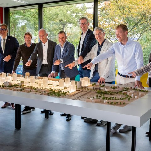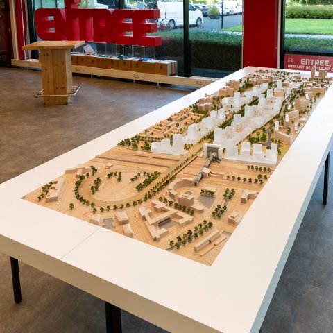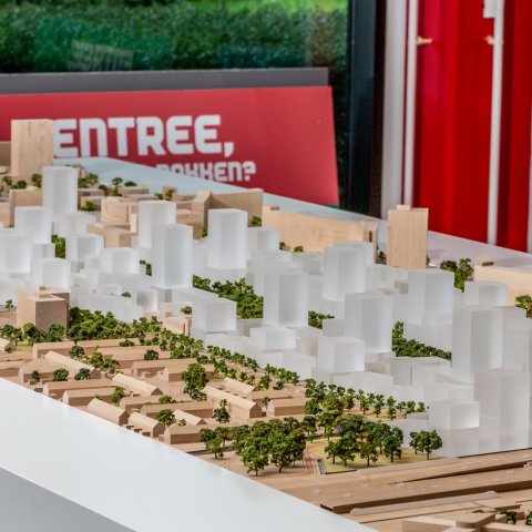 De maquette geeft een prachtig beeld van de nieuwe stadswijk. Ook de laatste wijzigingen zijn meegenomen, denk aan de toevoeging van het Abdissenbos aan Entree, de wijzigingen in de nieuwe stadsstraat Afrikaweg en de aanpassing van de bouwhoogtes langs de stadsstraat en de A12.